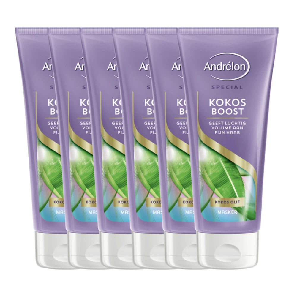 Andrelon Haarmasker Kokos Boost 180 mlHet Andrelon Haarmasker Kokos Boost, met kokos olie, dringt door tot diep in het haar en voedt het haar intensief, zonder het haar te verzwaren. Het haar is makkelijker doorkambaar en voelt luchtig, zacht en soepel. Kokos olie staat bekend om haar voedende werking en heeft de eigenschap te kunnen doordringen tot in de haarvezel, waardoor het je haar niet verzwaart. Dit terwijl andere oliën juist op je haar blijven liggen en hierdoor verzwarend kunnen we