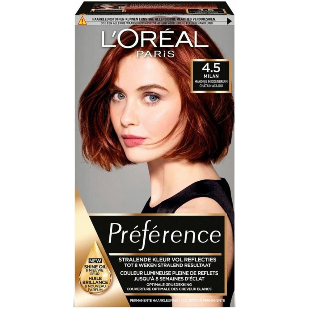 L’Oreal Lu0027OrĂ©al Preference Haarkleuring 4.5 Riviera – Mahonie Middenbruin